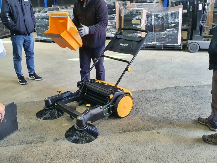 건식 보행식 무동력 스위퍼 마당쇠950 건설현장 공사장 공장 창고 축사 청소기 : 크린만물상