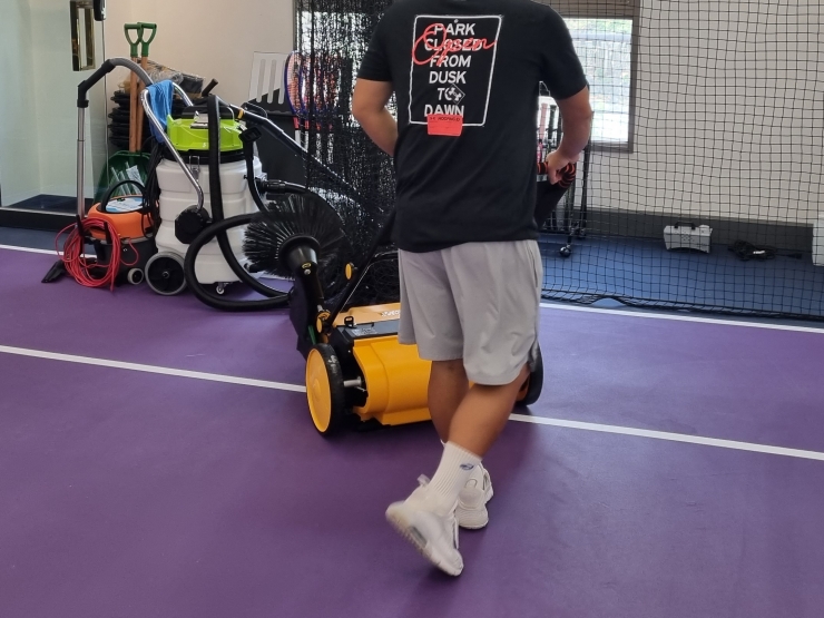 테니스장 특성상 공에서 털이 많이 나오고, 이 털이 먼지와 섞여 바닥에 쌓이는데, 마당쇠950은 이 문제를 깔끔하게 해결해줍니다.