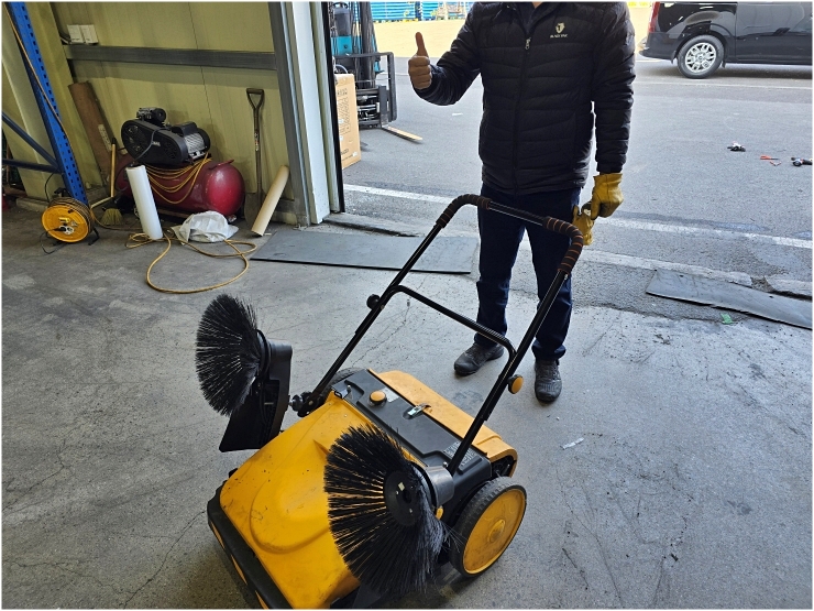 건식 보행식 무동력 스위퍼 마당쇠950 건설현장 공사장 야외 창고 축사 공장 청소기 : 크린만물상